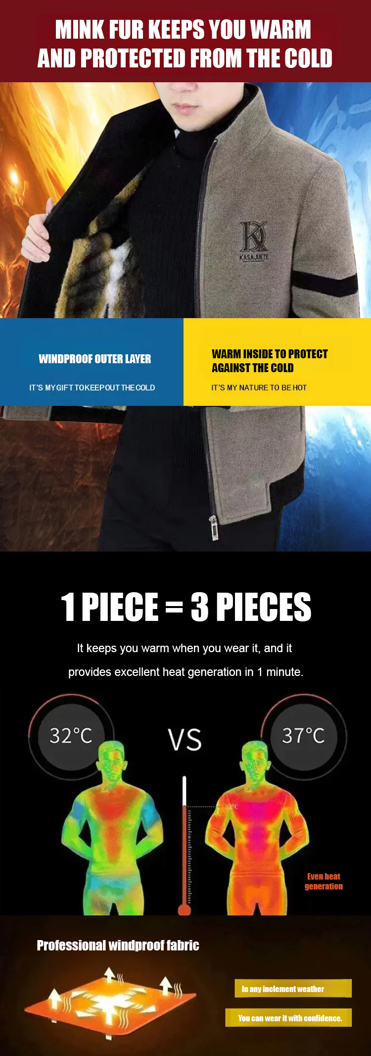 🔥🔥🔥【Antarctic Expedition Warm Jacket】Improves to -30°C, 100% imported mink fleece lining, hand-stitched, quickly retains heat in 5 seconds, provides continuous warmth, windproof and waterproof.